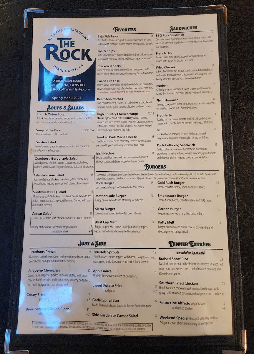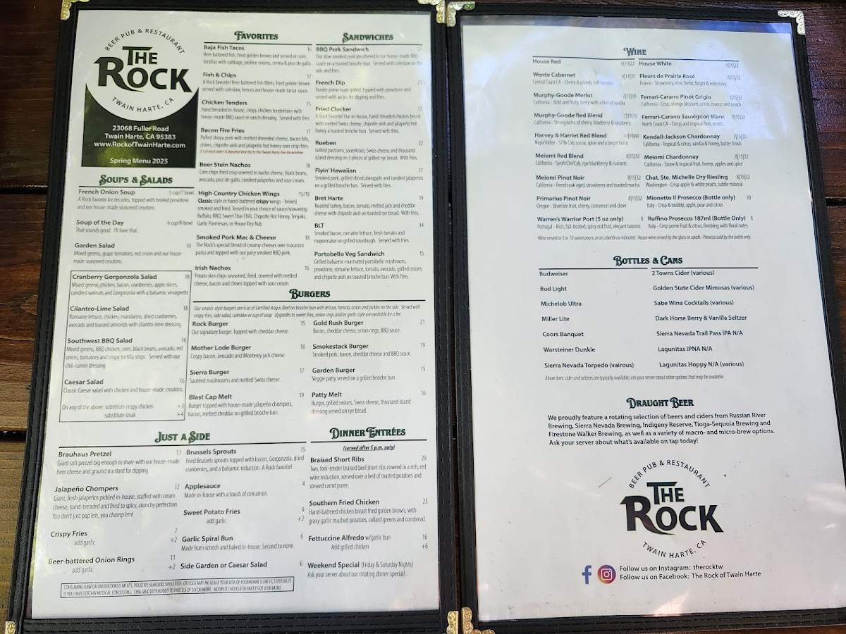 The Rock of Twain Harte is truly more than just a pub; it's a community hub where food, music, and good company collide. Whether you're a longtime fan or a first-time visitor, you're bound to feel the warmth and enthusiasm that makes this establishment shine. Come for the food, stay for the atmosphere, and leave with memories that will bring you back time and again.